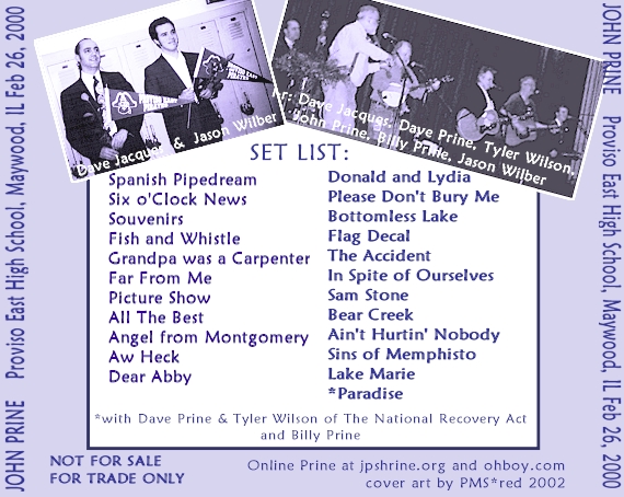 John Prine cover art for Proviso East High School Maywood, IL with Dave Prine, Tyler Wilson, Billy Prine, Dave Jaccques Feb 26 2000