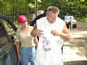 Guitar Joe, Bongo Eddy, and Tambourine Amy Jo entertained us all day, I don't think Guitar Joe stopped playing at all, he knew all of Prine's songs. Donna and Dennis came out looking awake finally and shared their horror story from the concert, which, Donna wouldn't trade the experience in for a good one anyway... she's got a way about her that just doesn't ruffle. Carrie calmed her babies to sleep, Alan took a nap, Julie organized tables and then slept on them while Cindy ran around collecting money. I even got to hear Lyla sing, and she's right, she can carry a tune, a good tune! It was like a big ole family picnic. Imagine 60 or 70 people who all kind of knew somebody, getting together, bringing a little bit of themselves to the table just because their one common interest was John Prine. I think the sweetest memory, was meeting Kara, who's husband had tragically died just a few months earlier, and he was a huge Prine fan and from the Lawton locals stories about him, he was a great guy. She had this good vibe about her like Ralph but she couldn't bring herself to come to the concert the night before, it hurt too much. Her son Tramble came with us, but no amount of convincing was going to bring her out that night. She came to the Soiree, full of it's Prine music, and she seemed happy... I dunno, it's a memory that felt like maybe we had managed to put a suture on that heart of hers for awhile. I met so many nice people that I couldn't begin to detail each and every one of them. I just know that for some strange reason of the heart, I miss them all and can't wait for our next gathering. Thanks to Steady Eddie and Buster for all the hog doin's. Steady, we want you at all the gatherings, we won't even make you work, you are just too fun to not have around. Thanks to Brian, Brennan, Micah and the boys at The Space for keeping the lights on and the coffee brewing, next time, you will be the music. Thanks to Kim for all that corn, I wish you would have been able to make it to the party. Thanks to those Barnett kids, for their graciousness and showing me that there still are towns small enough to grow kids up right for a big world. And a big thank you to Rich (Lawton) and Julie (Lightnin'head) for being foolish enough to open your mouths and say "Let's have a party" and then to make all the arrangements. Thanks to Oh Boy Records, that Road Boss, Dave Jacques, Jason Wilber and John Prine for making a bunch of fantasies reality for many people that night, the hot fudge sundae's are on me at the D.Q. next time. And mostly... thanks to the Webmister, the Burhead, Terry for putting up with all this craziness, for memorizing the songs, being my chauffeur, smiling the whole time, for fixing the computer every time I break it and not yelling too much and for understanding that it really does keep me off the streets and out of the stores. I love you. (yeah, it's the end... for now...sigh) ©Reeda Buresh 2002